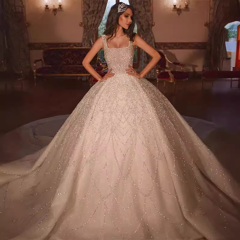 ウェディングドレス 2025 新しいふわふわガーゼスリムフィットプリンセス AliExpress Amazon ホットセールトレーリングウェディングドレス