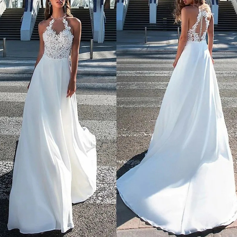 レースのウェディングドレス 2025 新しいヨーロッパとアメリカのアマゾンシフォンドレスウエディングホワイトイブニングドレススリットスカート