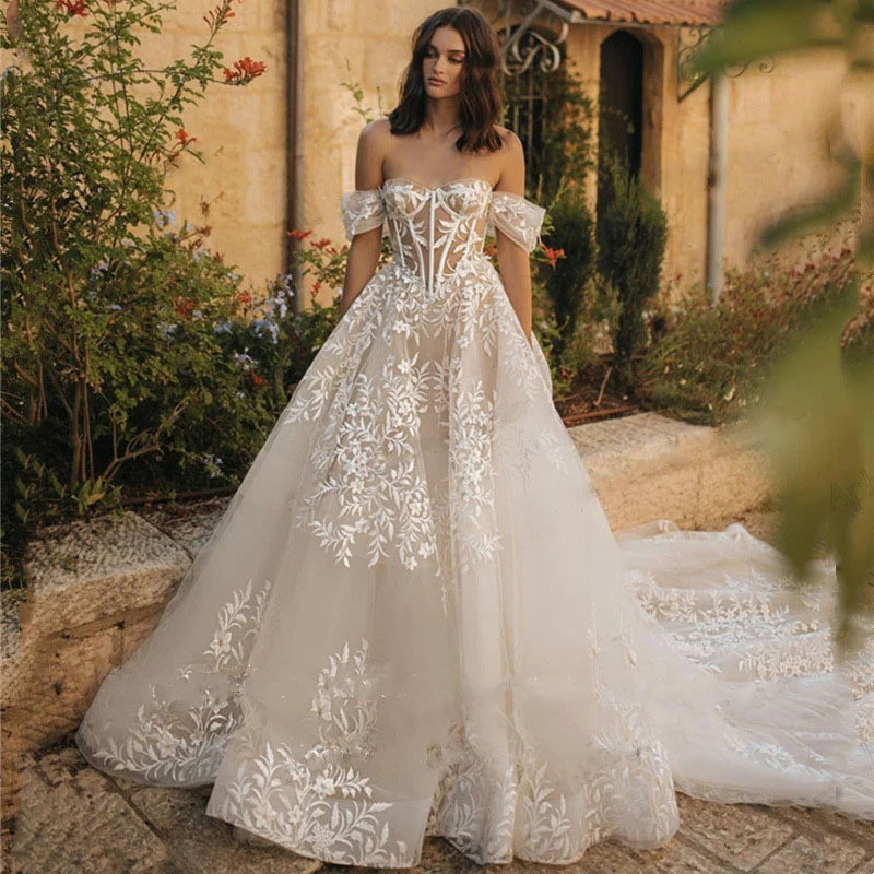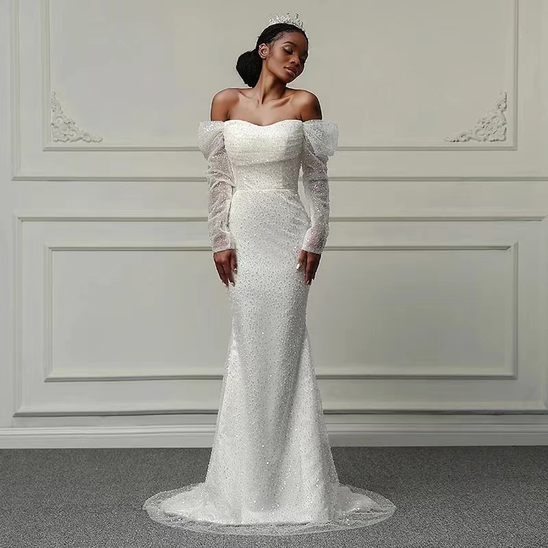 一字肩魚尾ウエディングドレス尾レース花嫁芝生結婚式国境を越えた対外貿易ウエディングドレス2024新夏