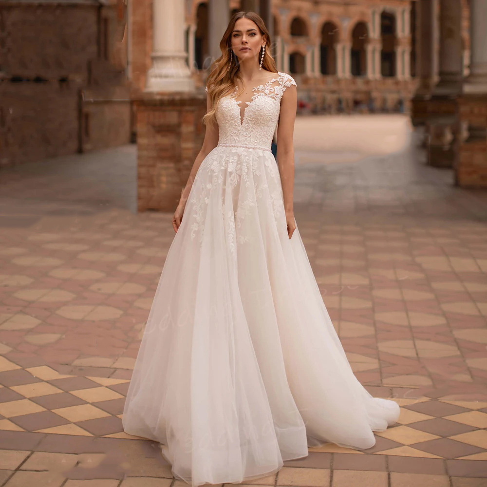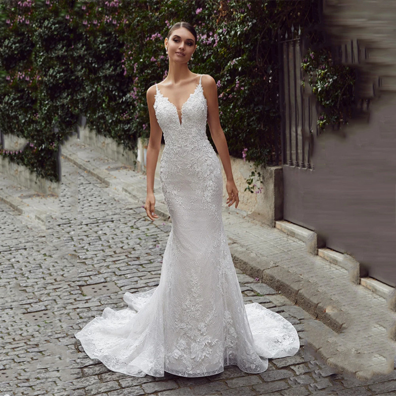 クロスボーダーの主なウェディングドレス2024夏の新型のセクシーなvネックの背中のスリムなアップリケのレースのドレスの優雅な宴会の女性