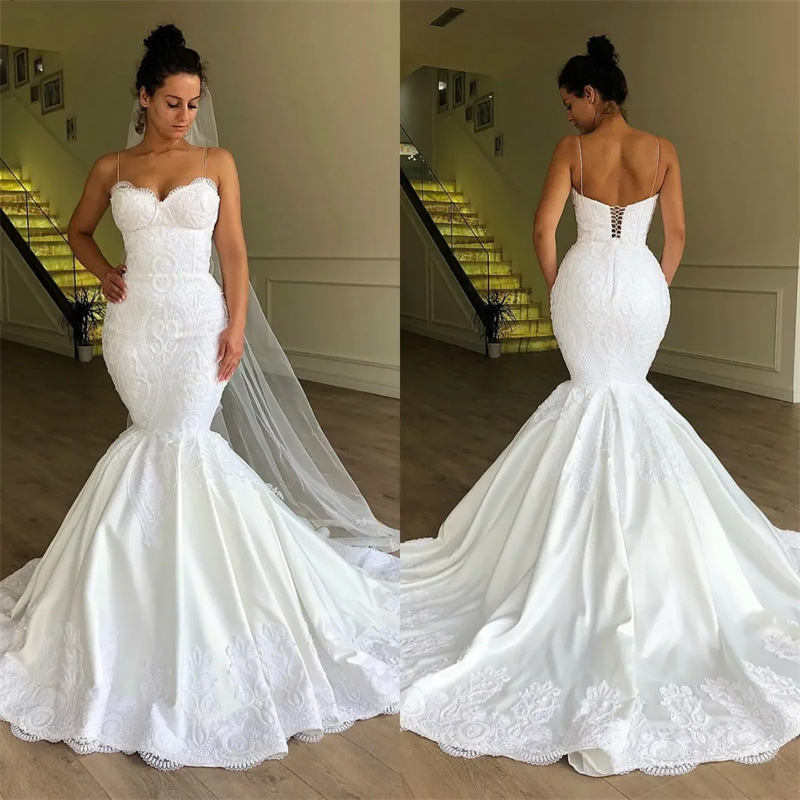 クロスボーダーのウェディングドレスのスリムなセクシーな白いストラップの尾の露出したバックのデザインのウェディングドレスの優雅な気質の女性の新しいドレスのスカート