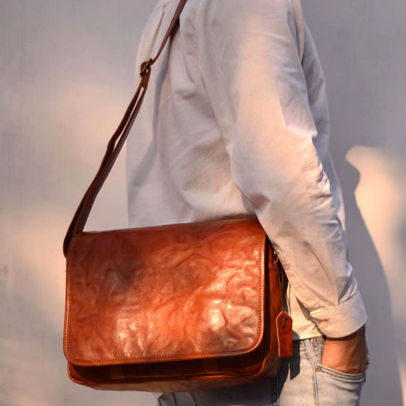 日系郵便便カバンレトロな質感通勤レトロ本革男性カバン斜めがけショルダーバッグ小方カバンなめし牛革シングルショルダー