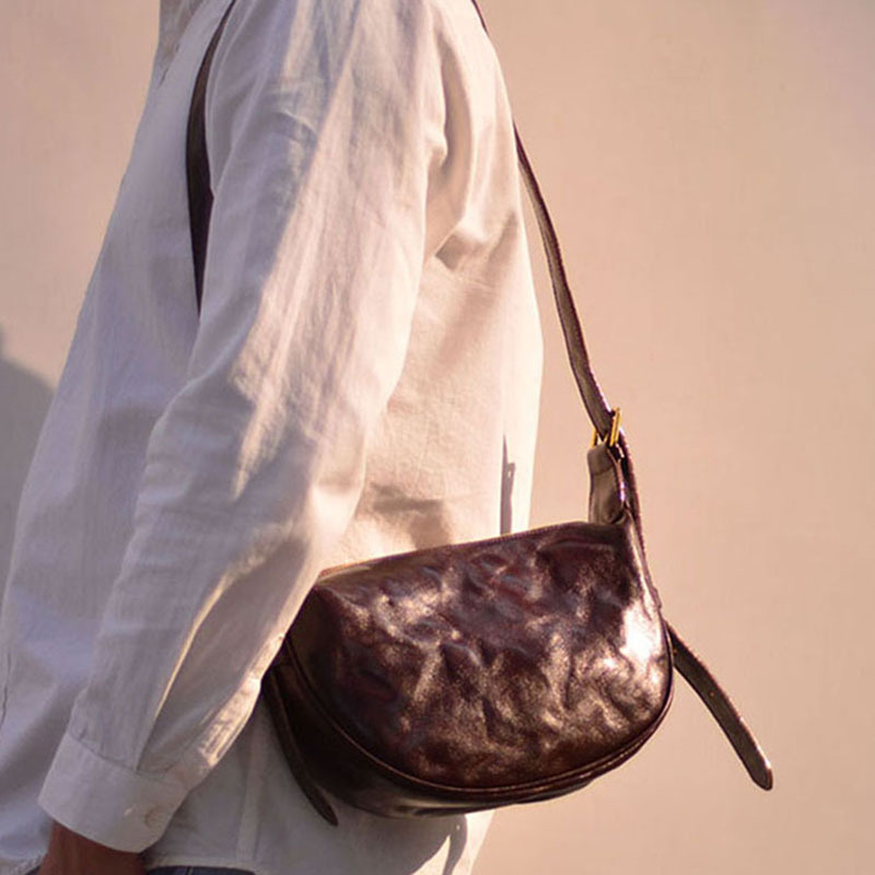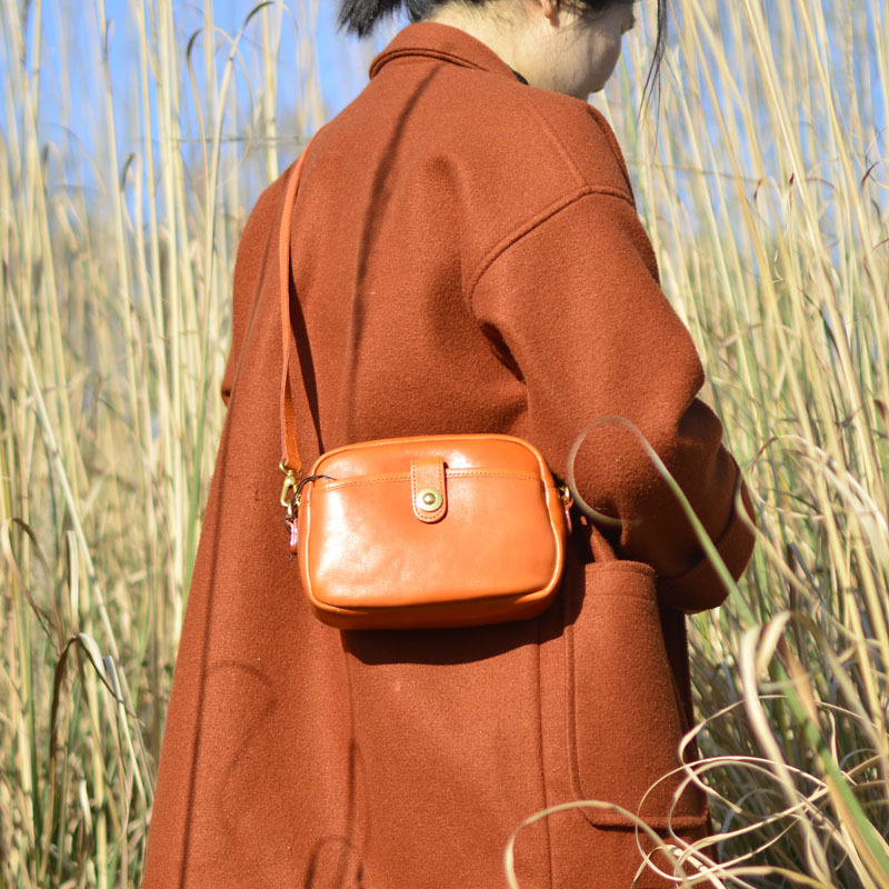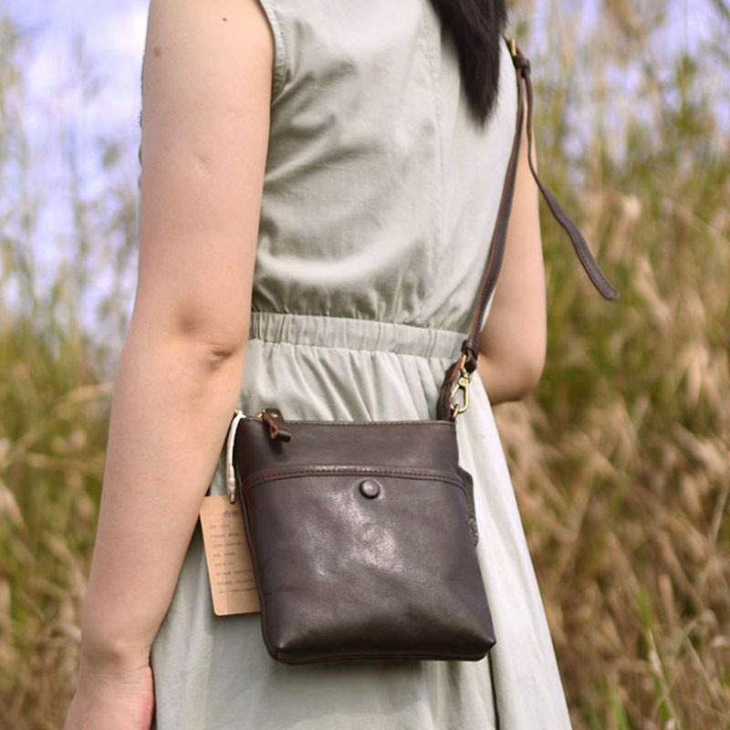 手作りのレトロな頭の層になめした牛革のショルダーバッグ