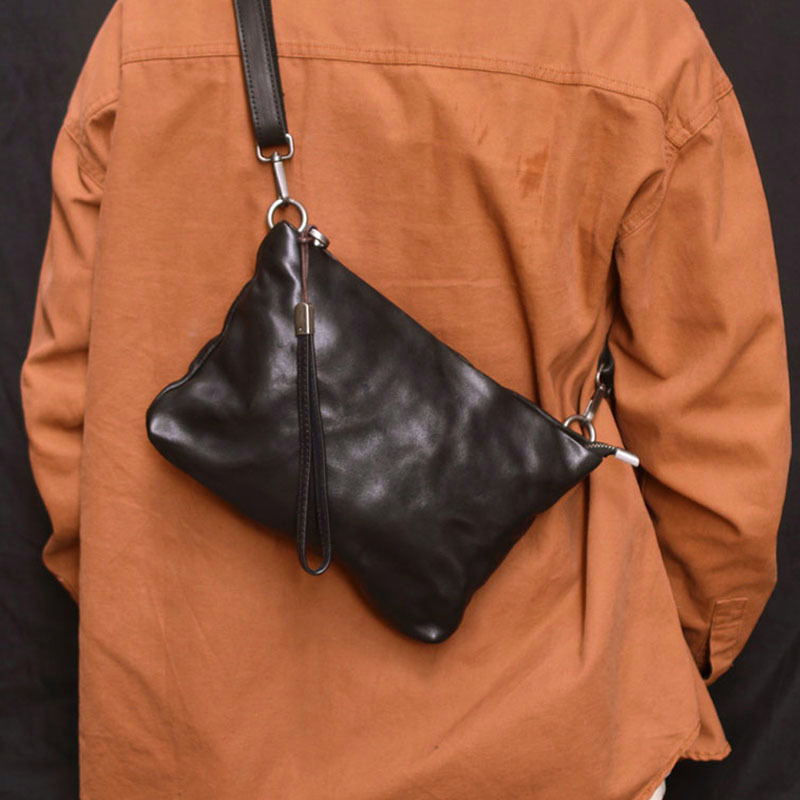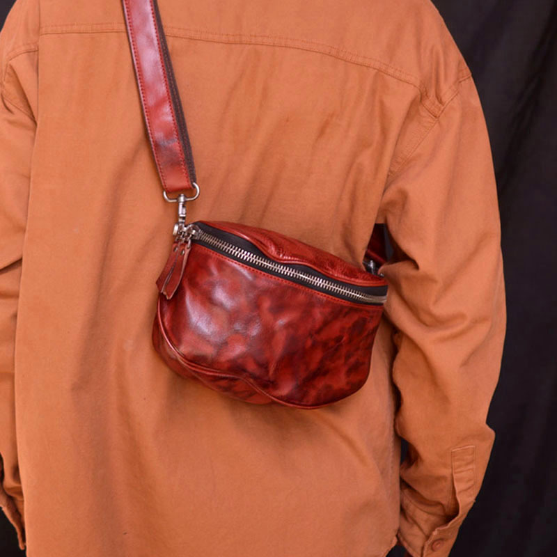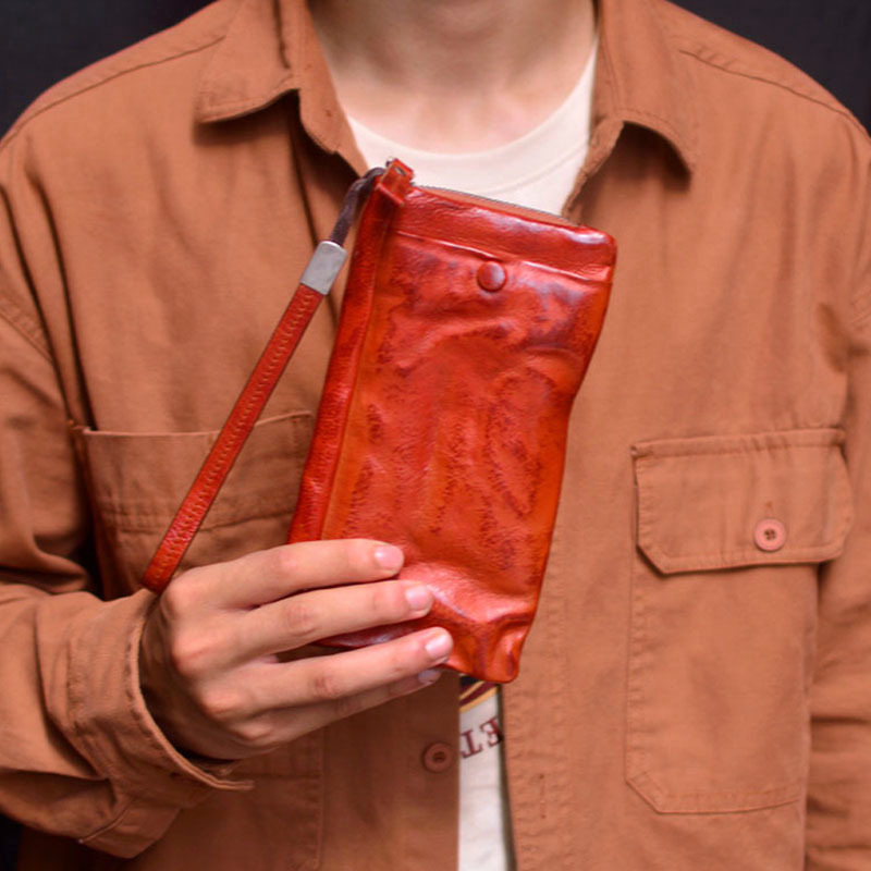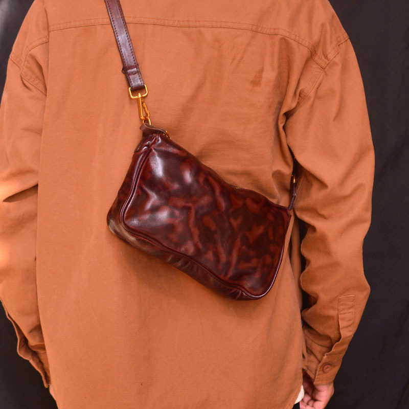 しわ工芸手作りレトロ多機能斜めショルダーバッグ携帯電話男女通用本革手首バッグ