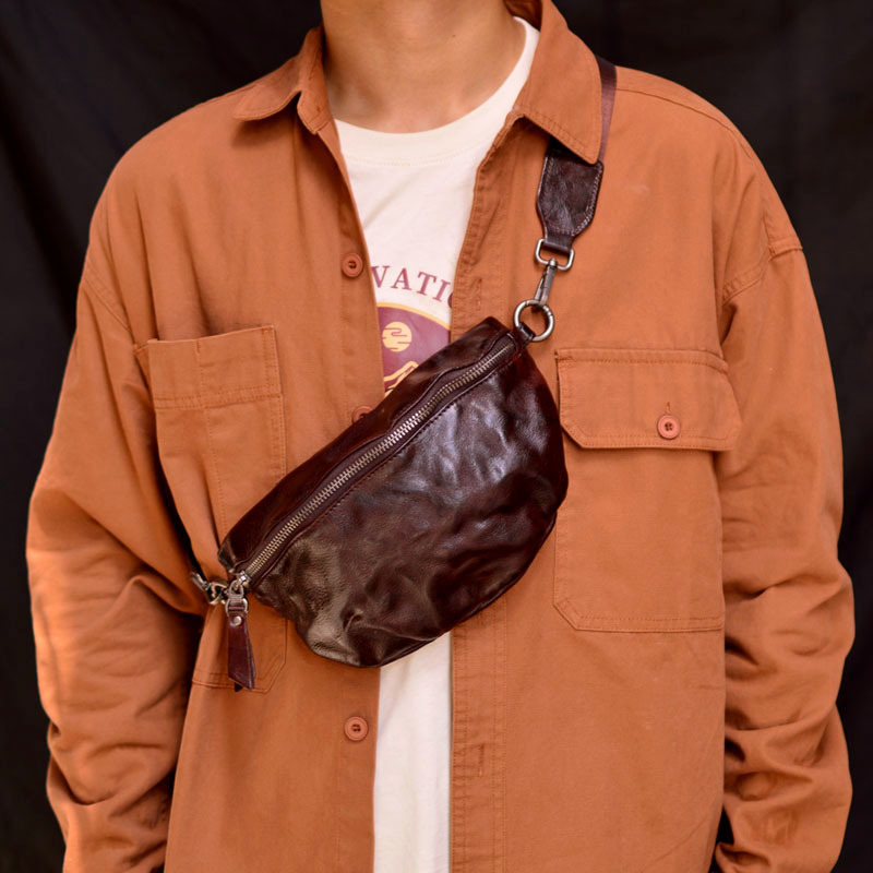 トップ層牛革男性胸バッグ本革シングルショルダーバッグビジネスカジュアル斜め掛けショルダーバッグウエストバッグ男性携帯収納小さい方カバン