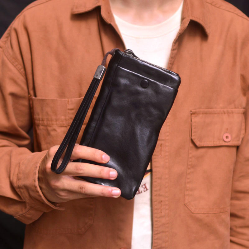 本革レトロカジュアル通勤小衆メンズ財布長型マルチカード位大容量手持ちカバンカバン鞄革挟み男