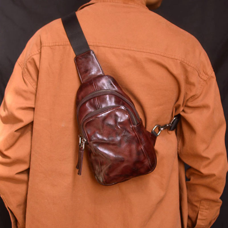 胸のカバンのしわの復古的な男性のカジュアルな男性の肩の斜めのショルダーバッグの頭の層の牛革の本革の小さいリュックサックはファッションを掛けます。