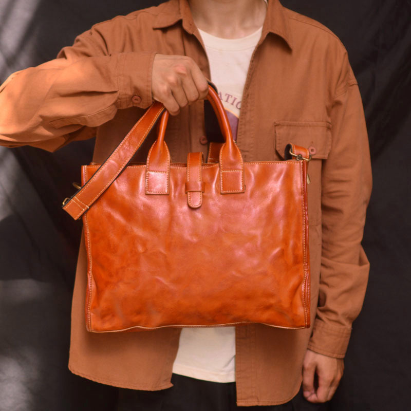 レトロ男性ブリーフケース本革カジュアルパソコン男性カバン弁護士ビジネス牛革シングル肩斜め掛けハンドバッグ男性モデル