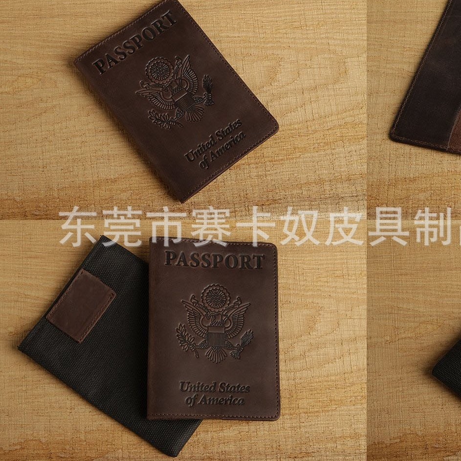 レトロ真牛皮パスポートクリップ精装トップ層牛革茶色パスポートカバー短い対外貿易パスポートクリップはロゴを印刷できる