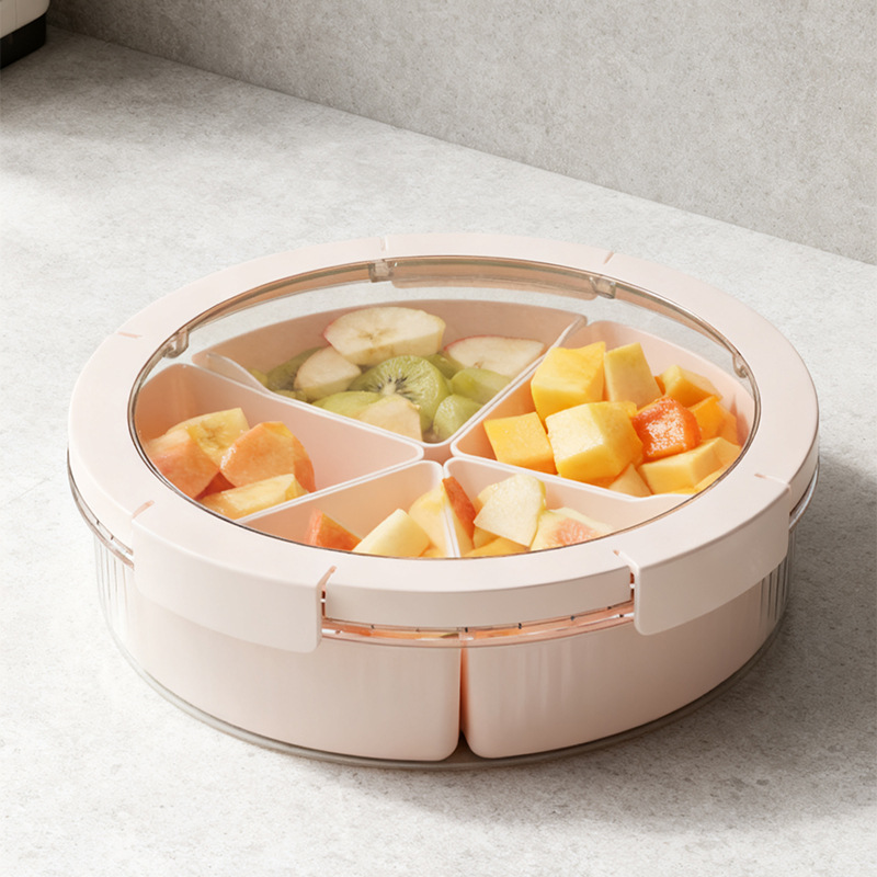 2024新型軽豪華分格果盤客間高颜値円形間食キャンディー箱蓋付きナッツ小食盤