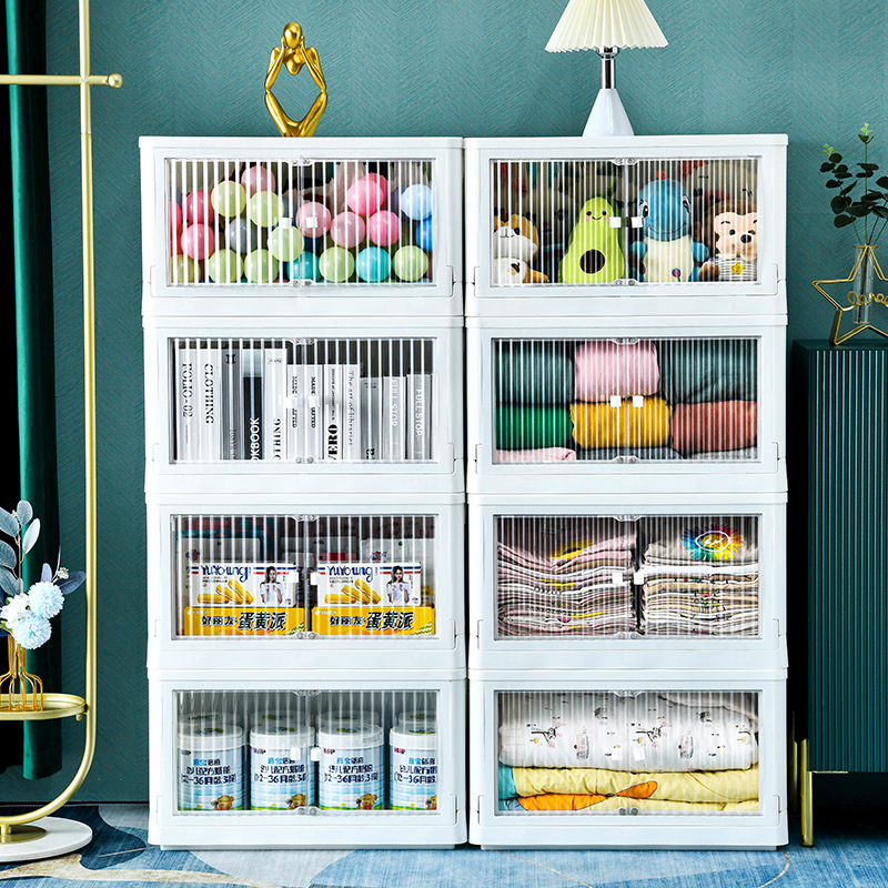 収納ボックスを重ねることができます。大きいサイズを厚くします。