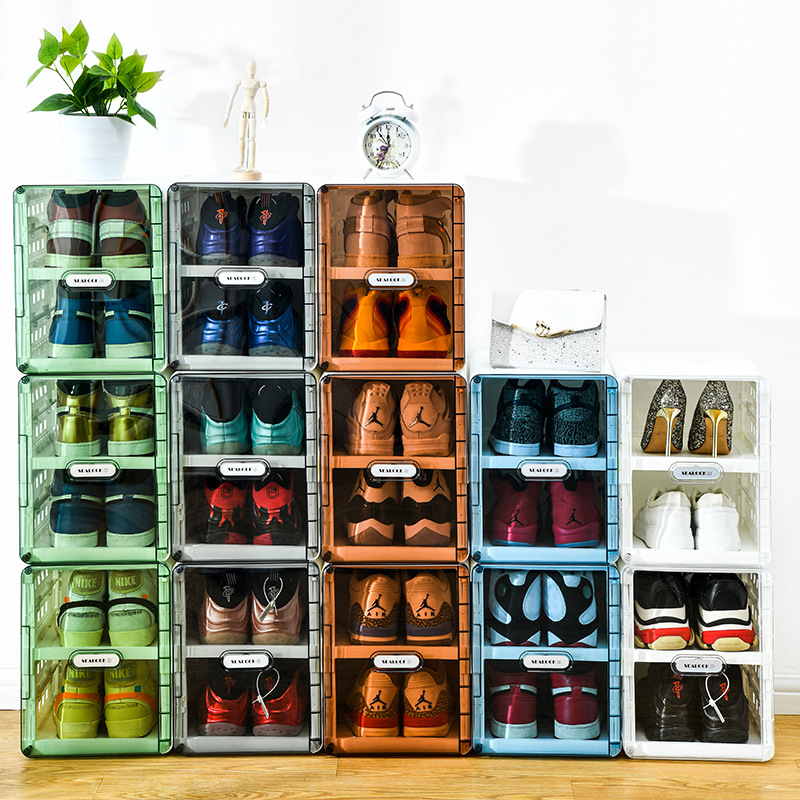 折り畳み靴ケース厚い透明磁気吸引式靴ショーケース防塵高組靴収納ケース二重aj靴ケース