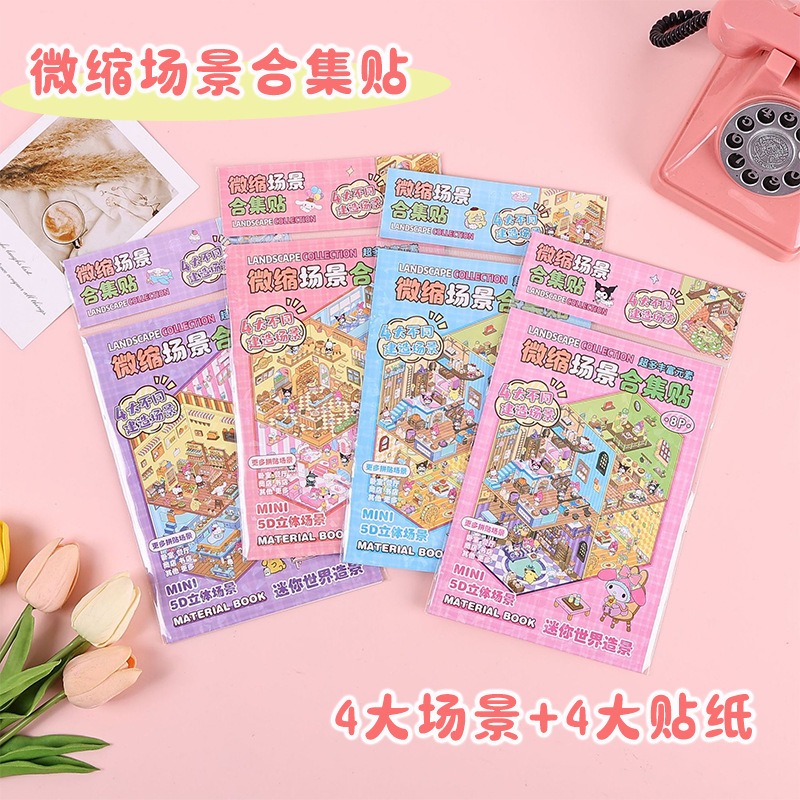 新型ミニチュアシーン立体益智合集造景ステッカー本趣味漫画ステッカーセットDIY子供用
