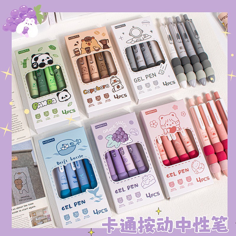 MOKAアニメかわいい高颜値スポンジ太った雲ペン押し中性ペン0.5mmブラシ問題ペンST頭黒