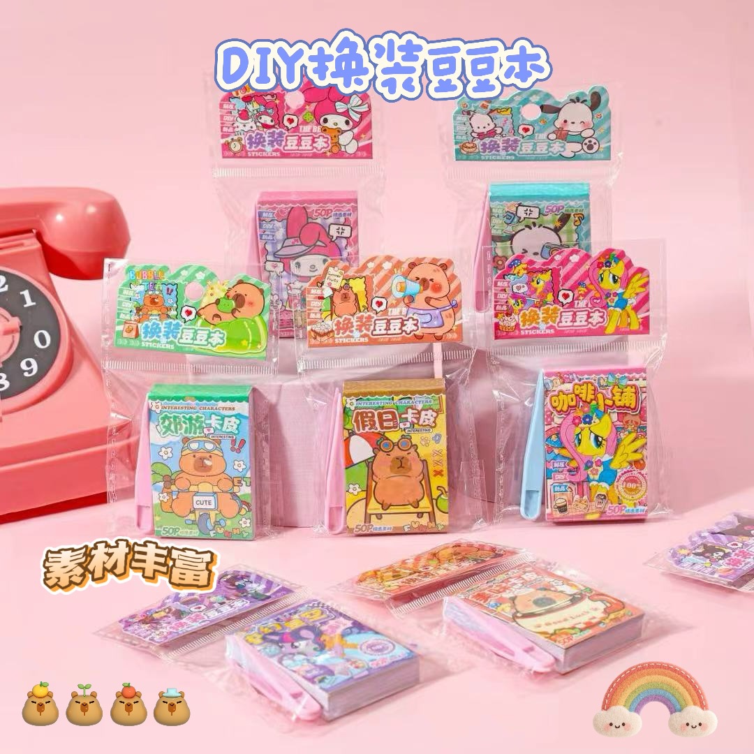 新しいミニビーニー漫画かわいいハンドブック素材ステッカー装飾カピバラ子供のご褒美ステッカーブック