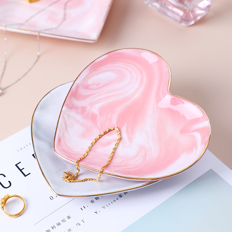 クロスボーダー北欧大理石紋描金収納盤ハート型陶磁器アクセサリー盤ネックレスイヤリングアクセサリー指輪トレー