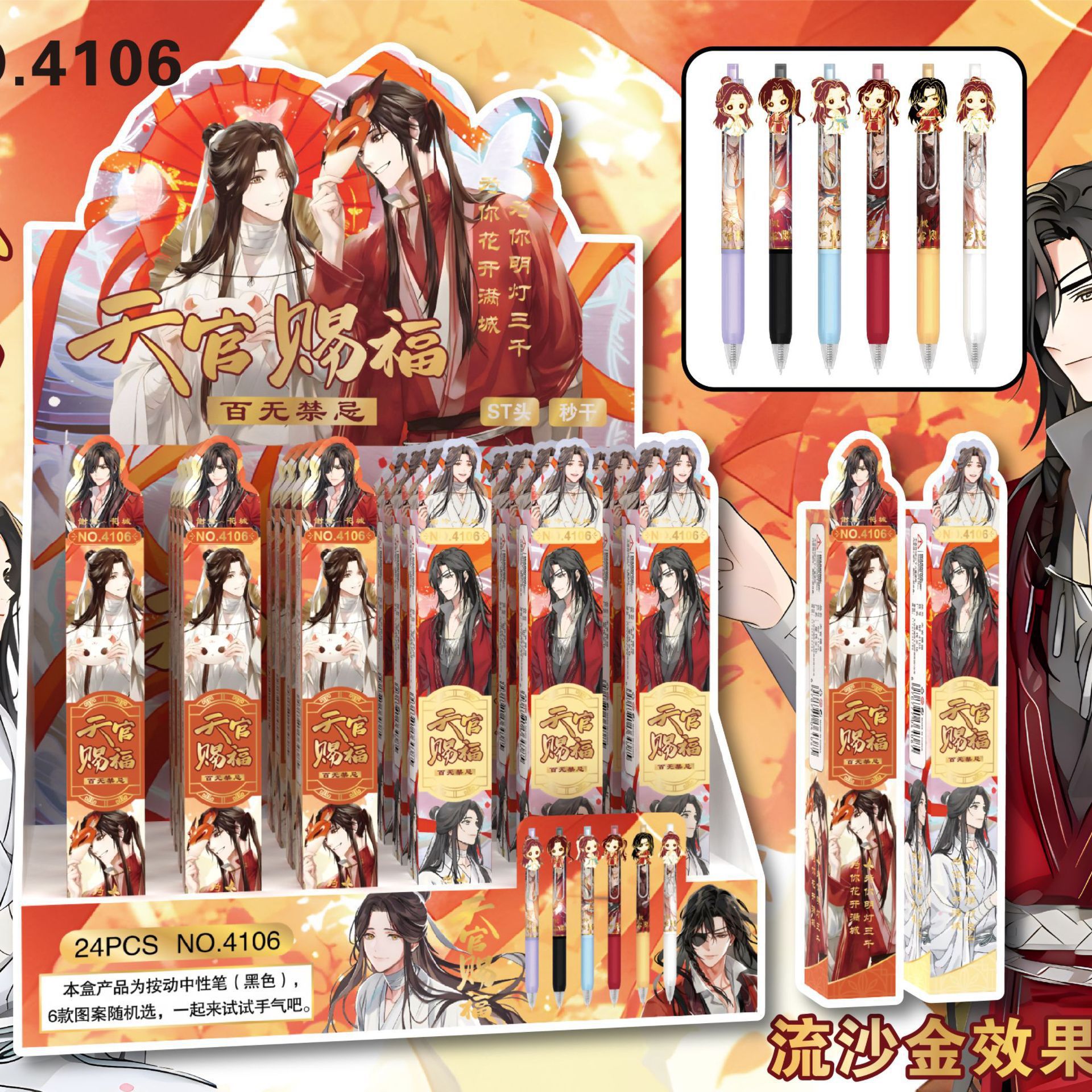 新しいアニメの金属のパッチの中性の筆のブラインドの箱のペンのかわいい高顔の値の学生は金の署名のペンを押します。