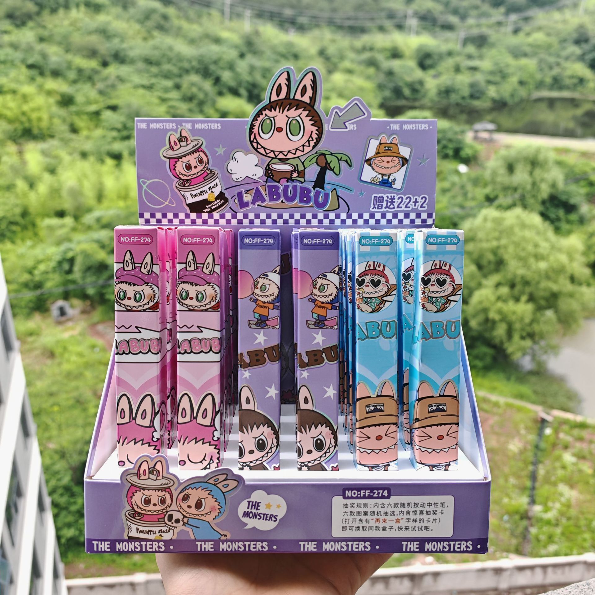 新しい漫画ラブブブラインドボックスペンかわいいLABUBU署名ペン学生書き込みスムーズなプレス式ゲルペン