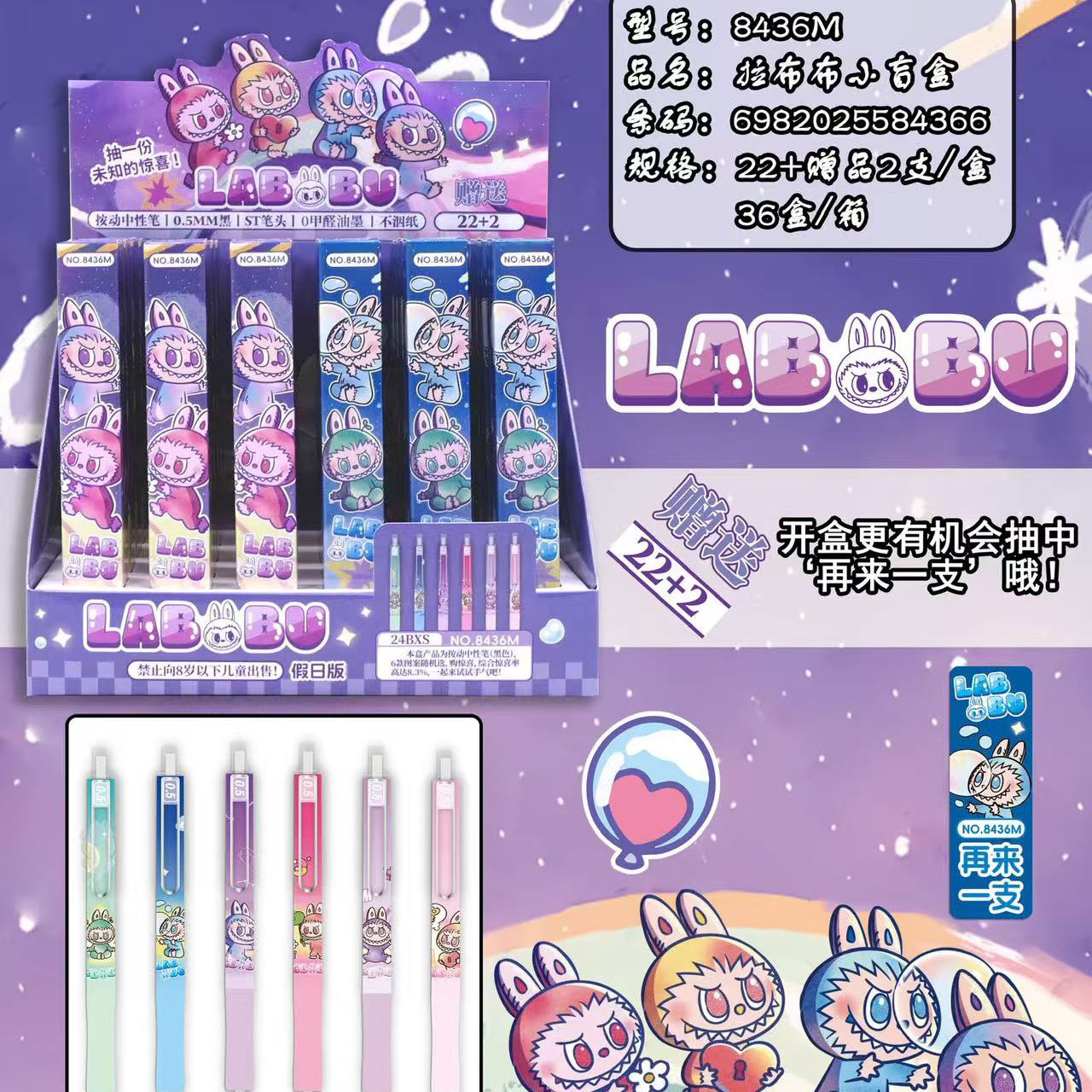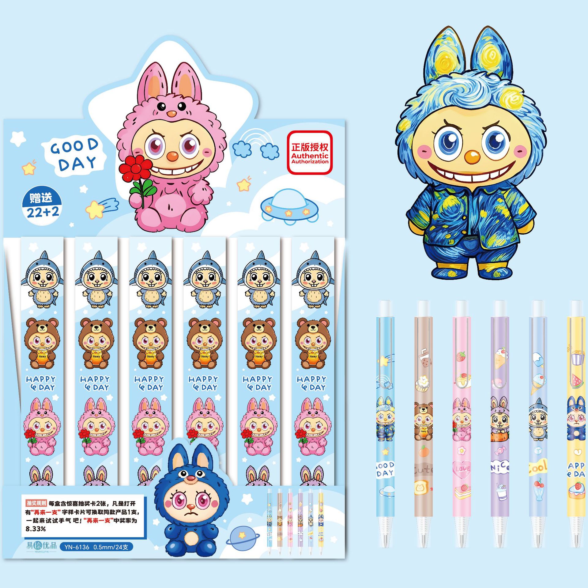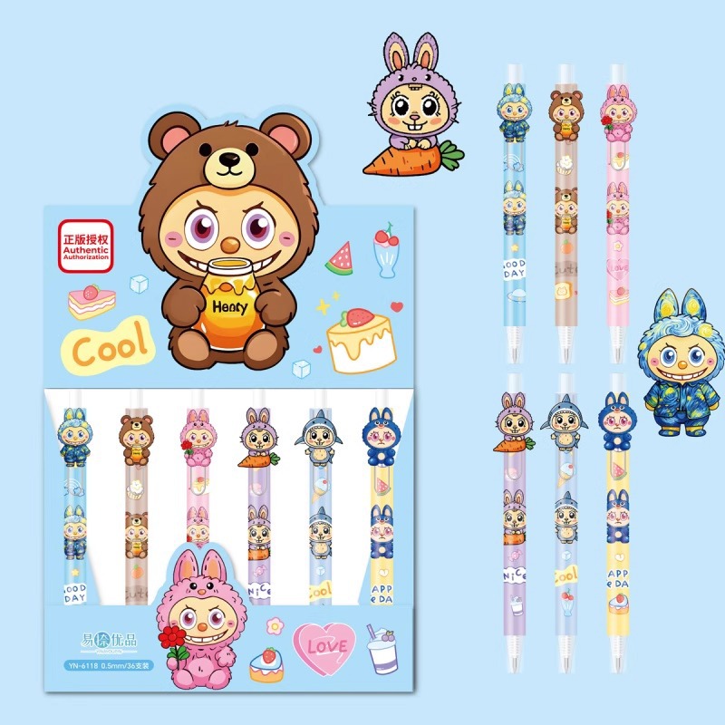 正規認定 YN-6136 LABUBU ブラインドボックスペン 漫画 かわいい LABUBU サインペン スムーズに書ける水性ペン