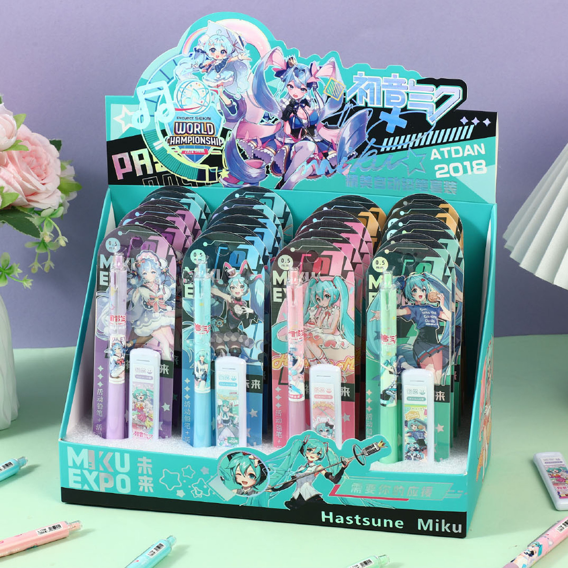 新しい初音ミクシャープペンシルセット漫画アニメ削らない自動鉛筆学生書き込み 0.5 芯