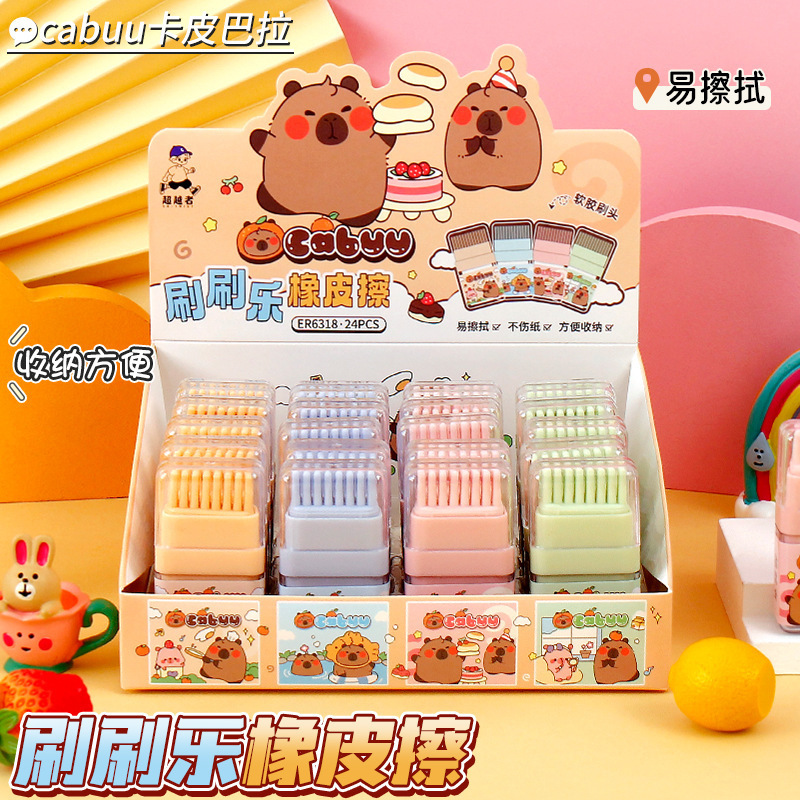 カピバラブラシ消しゴム双頭修正消しゴムかわいい高価値クリーニング消しゴム学生文具用品