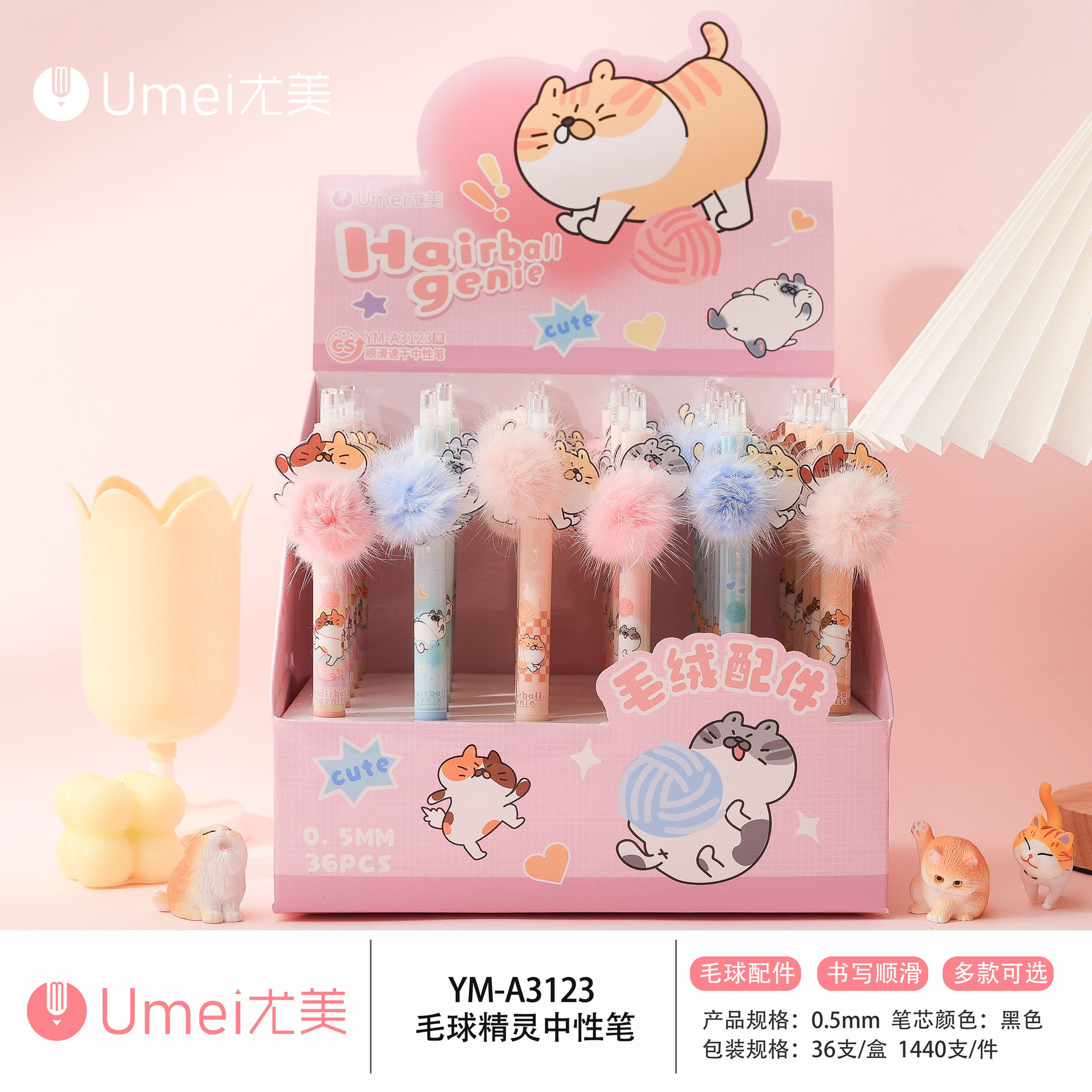 尤美の新型3123毛玉の精霊の貼る中性の筆の漫画のかわいい毛の高い顔の値は解凍して水のペンを押します。