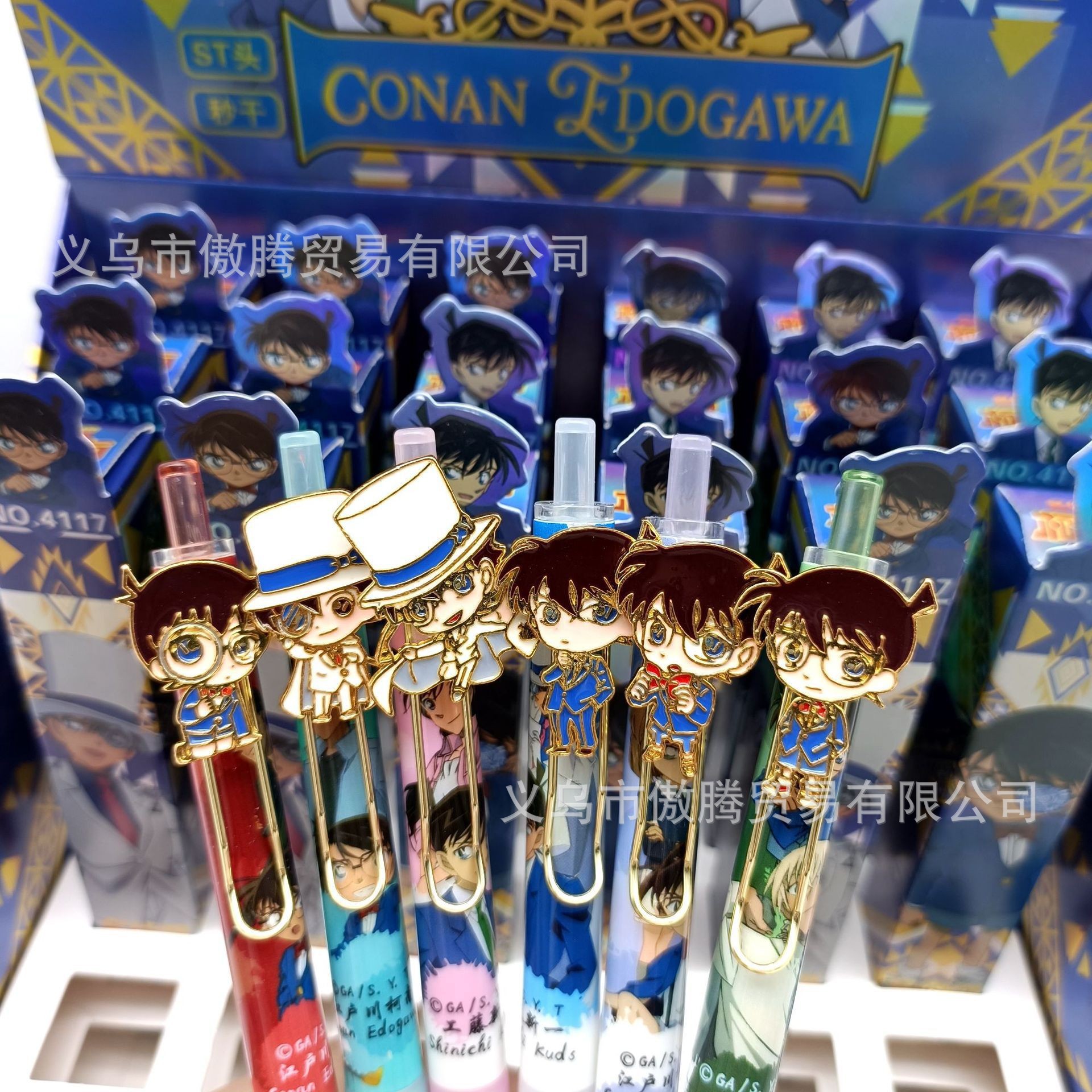 新品コナンメタルパッチブラインドボックスペン漫画金属ペンクリップ押して中性ペンSTヘッドブラシ題秒乾水ペン