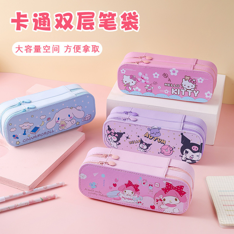 二重大容量ペンケースクロミ玉桂犬美楽ティkt猫文房具ケース女の子小学生可