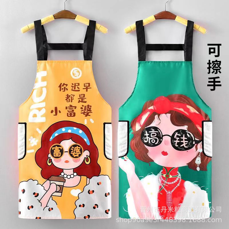 エプロンキッチン家庭用国潮風作業服結婚ジョー移転汚れ防止ウエスト防水防油ファッション韓国版注文可能