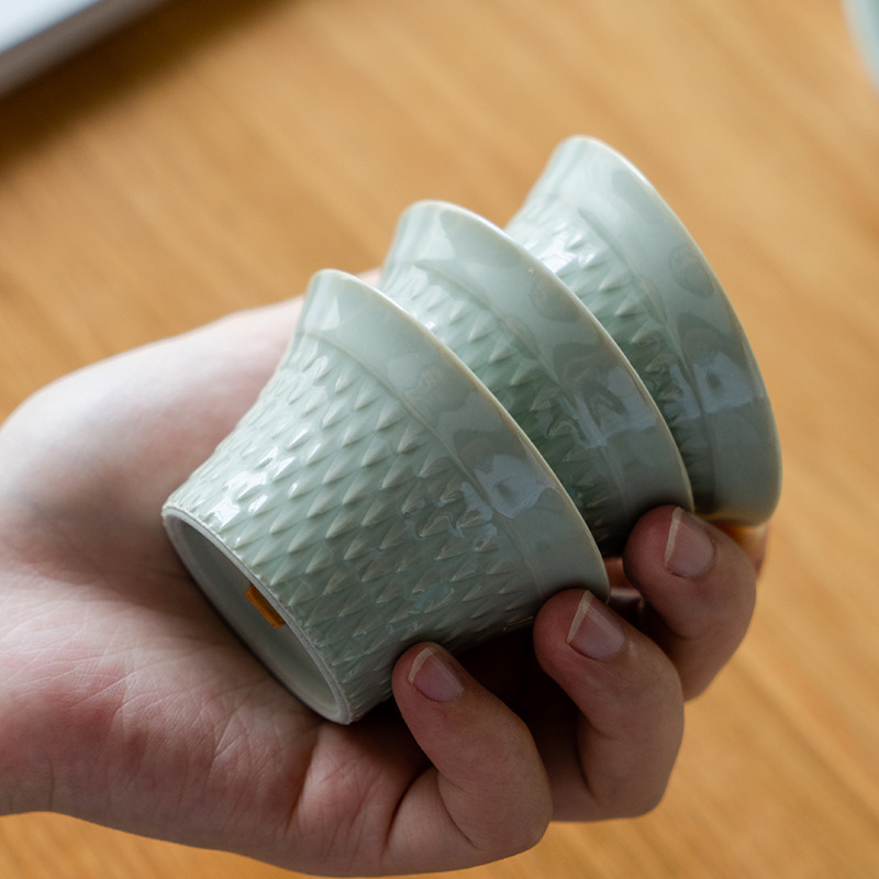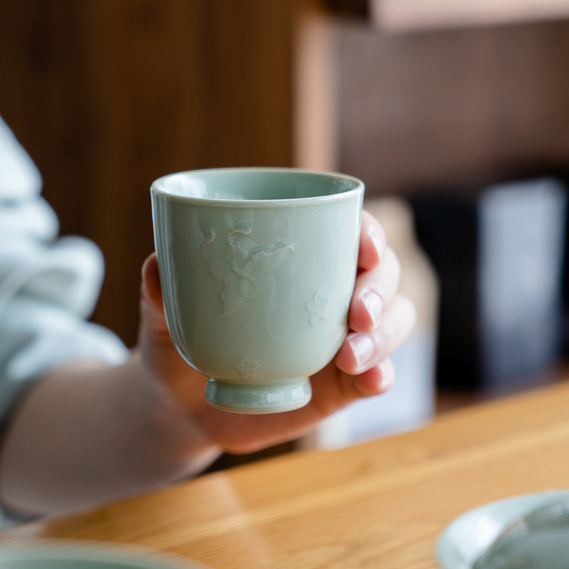 宋青手作りレリーフシングルカップ陶磁器工夫茶道具品茗杯主人カップ手作り大サイズレトロ家庭用シングルカップ