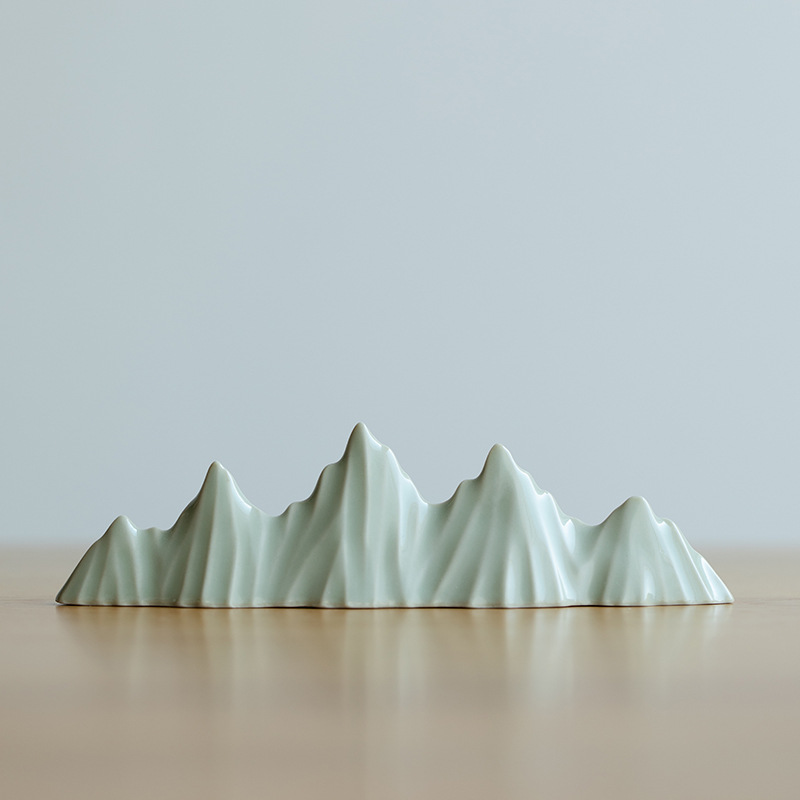 宋青山体筆立て文房四宝書房毛筆置き陶磁器筆立て山書道鎮紙尺山形筆立て
