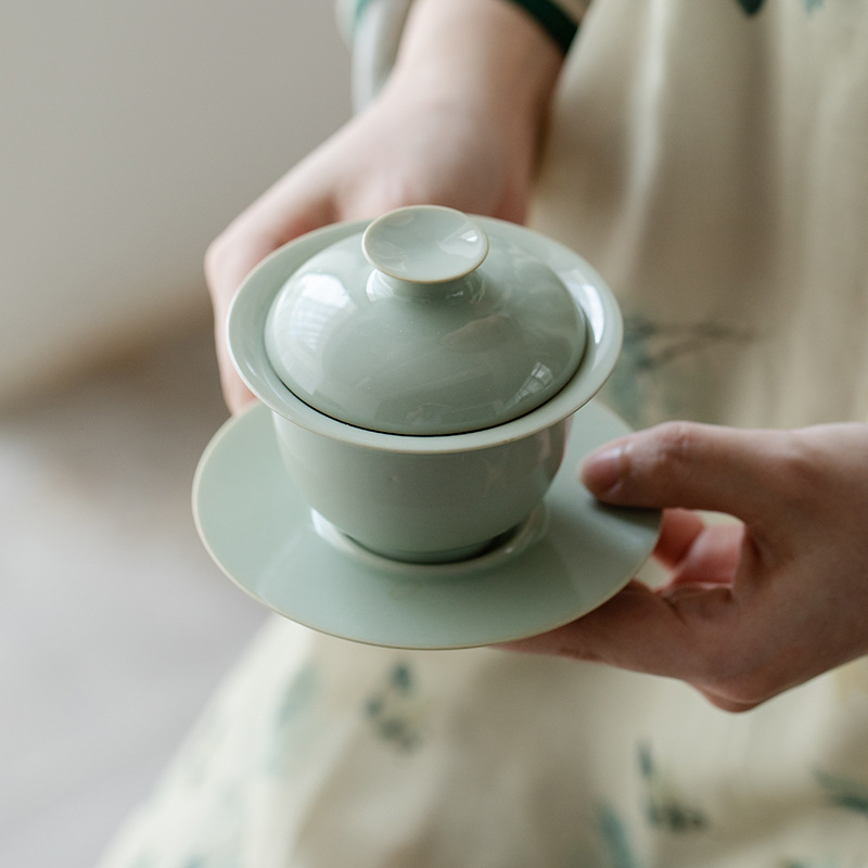 磁器の宋青釉を展示して悠々と碗をかぶせます。