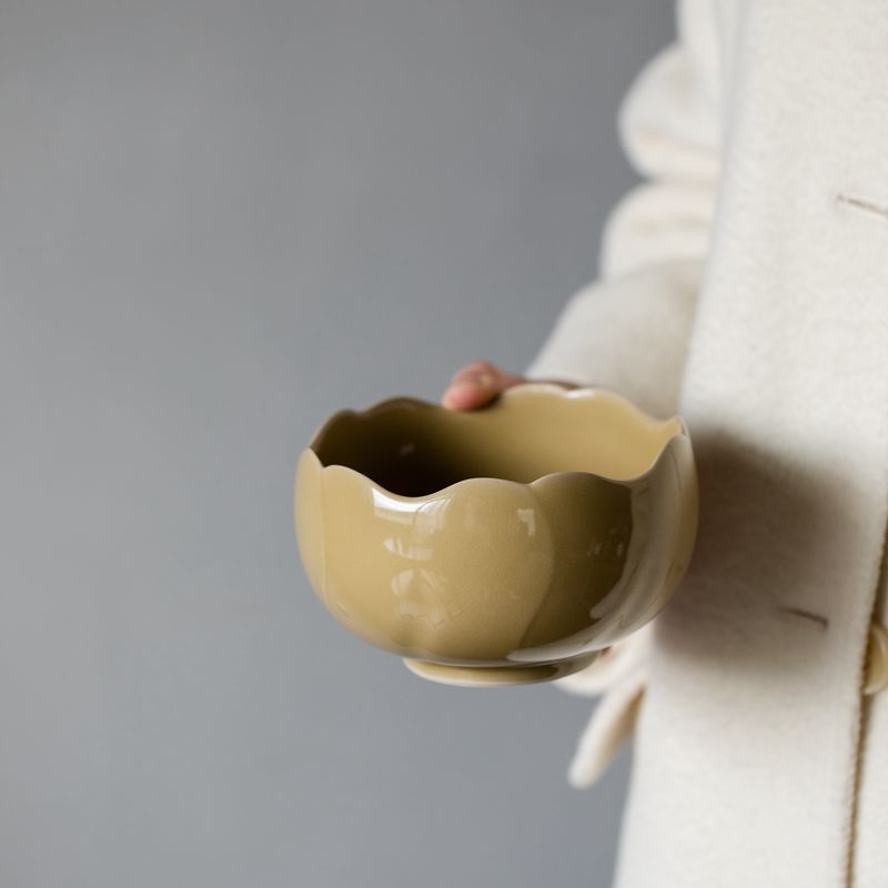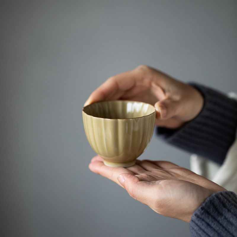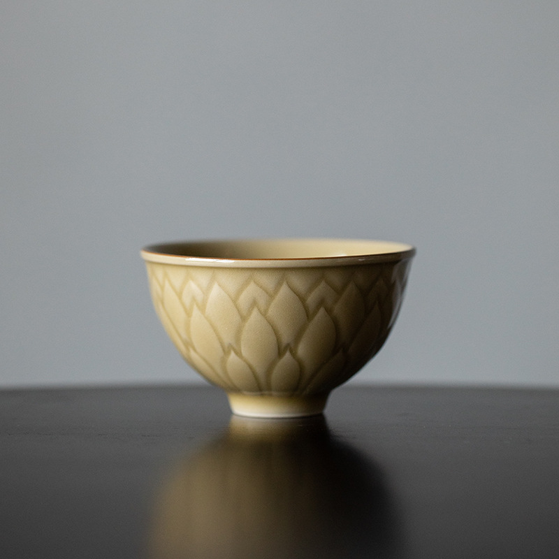 展磁器定窯黄蓮弁ティーカップ手作りレリーフ主人カップ陶磁器品茗杯工夫茶器大サイズ家庭用カップ
