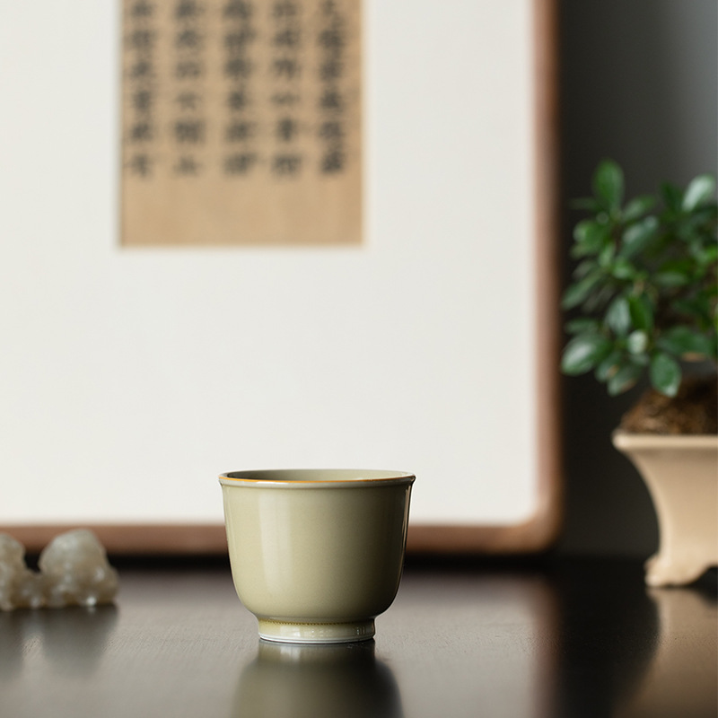 展磁器宋青釉品茗杯カンフーティーカップ主人杯単杯レトロ陶磁器手作トランペット家庭用カップ