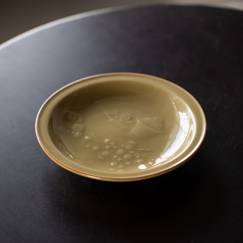 展磁器宋青釉悠然と水洗い陶磁器浮き彫り手作り茶洗杯洗茶かすかめ水盆大茶道部品