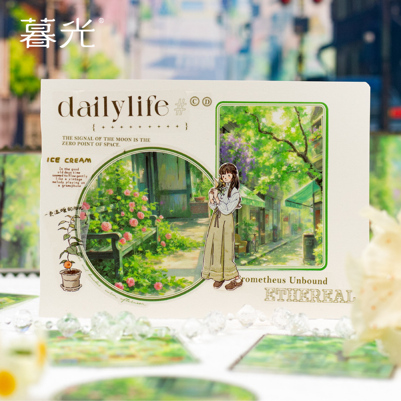 夕暮れに優しいシリーズ霧面PET型切りテープ画報雑誌手帳タイルDIY素材4種類