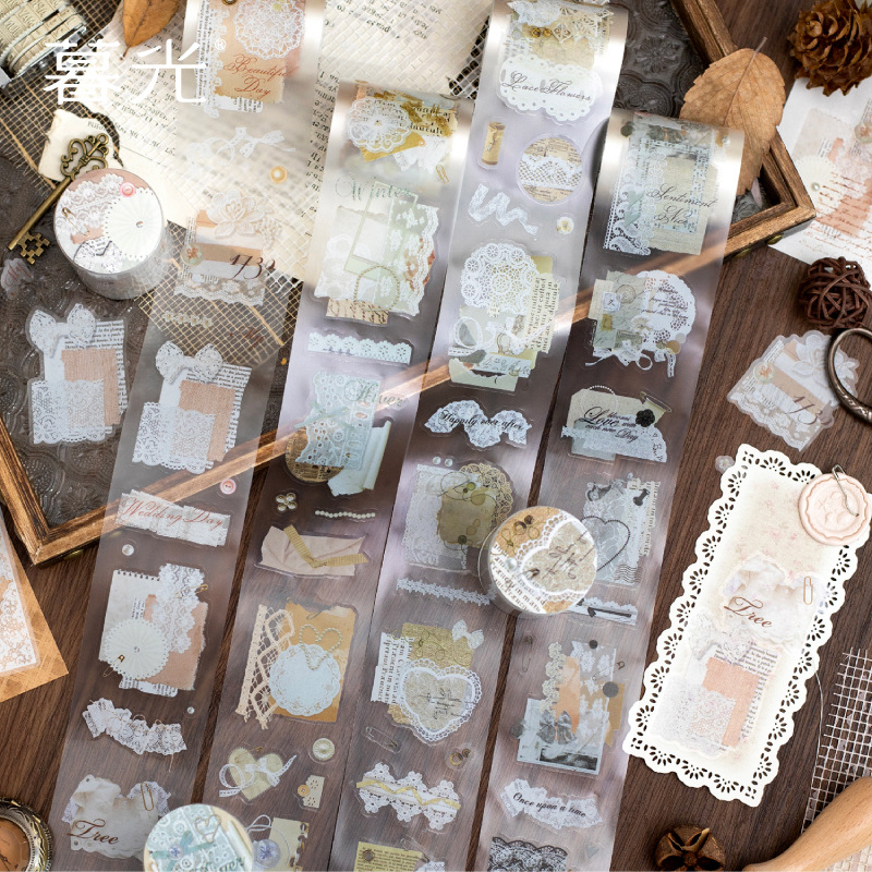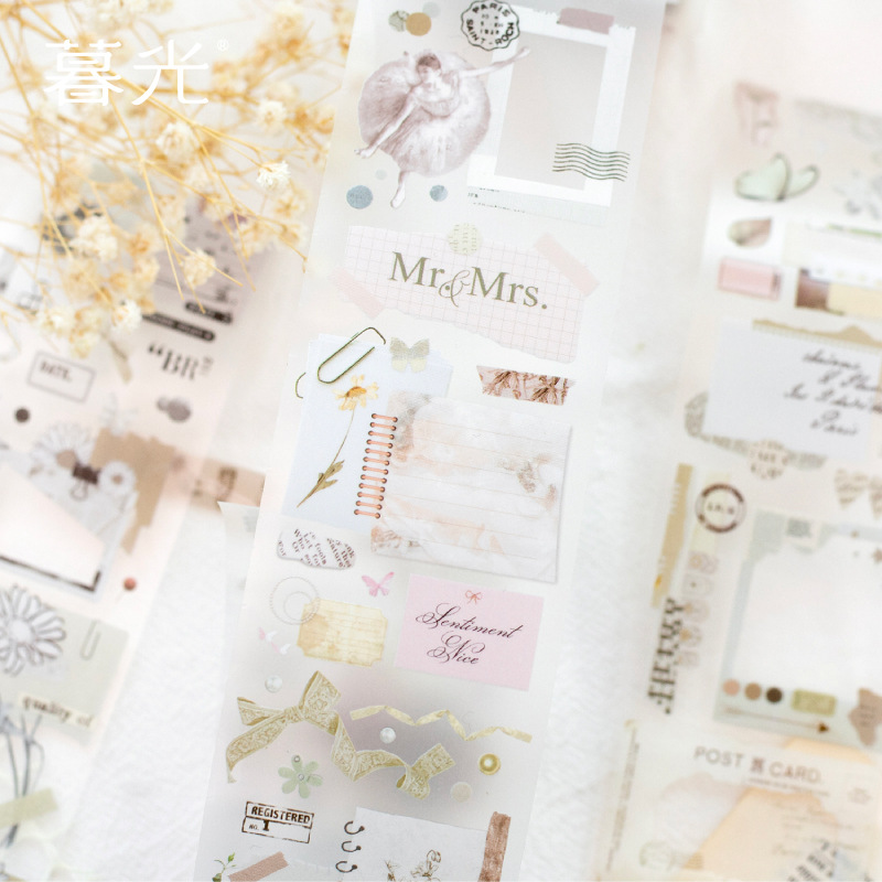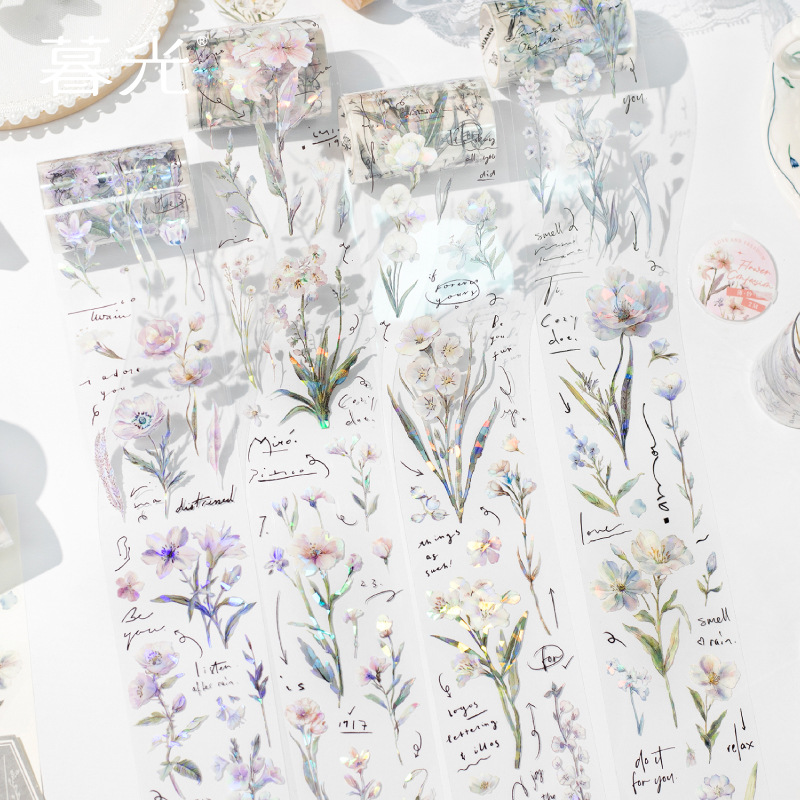 トワイライト-ホワイトミストフローラルシリーズ マットPETテープ 雑誌フォトフレーム レトロ風コラージュハンドブックテープ 4種類
