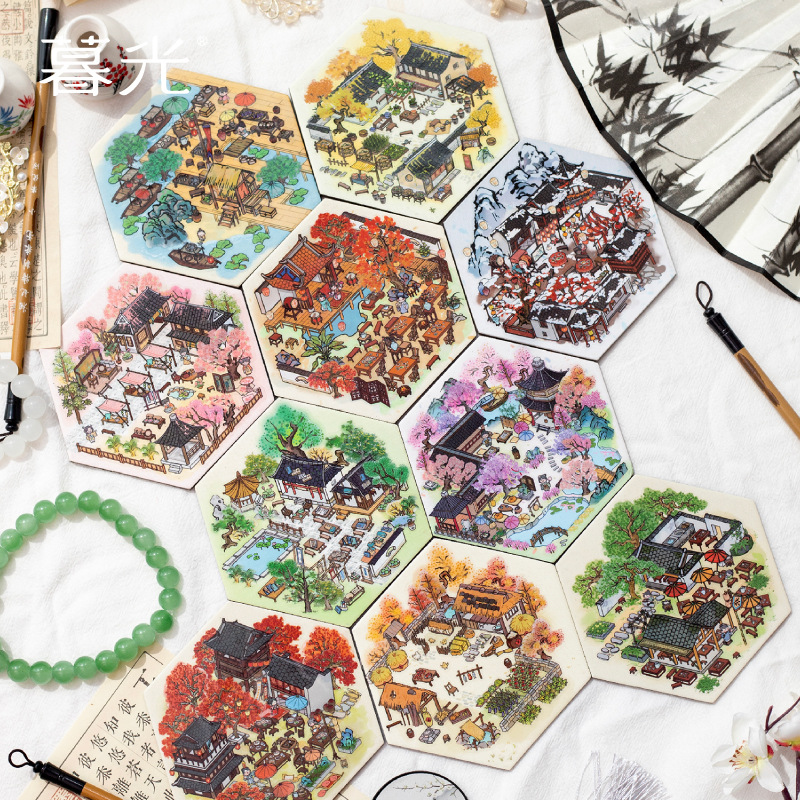 トワイライト中国風造園冷蔵庫マグネットサプライズボックス六角形中国風楽しいコラージュ磁気ブラインドボックスフルモデル 10 ボックス