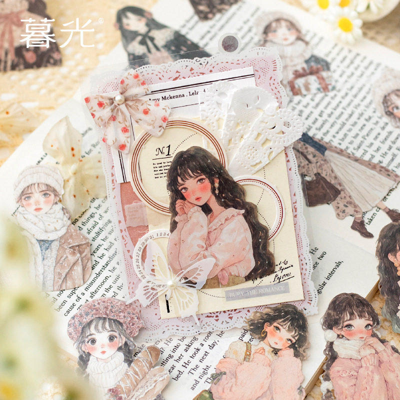 夕暮れの優しい定期刊行物シリーズpetダイカットシールはファッション的な暖冬に女性の主シールを着て4種類を包む
