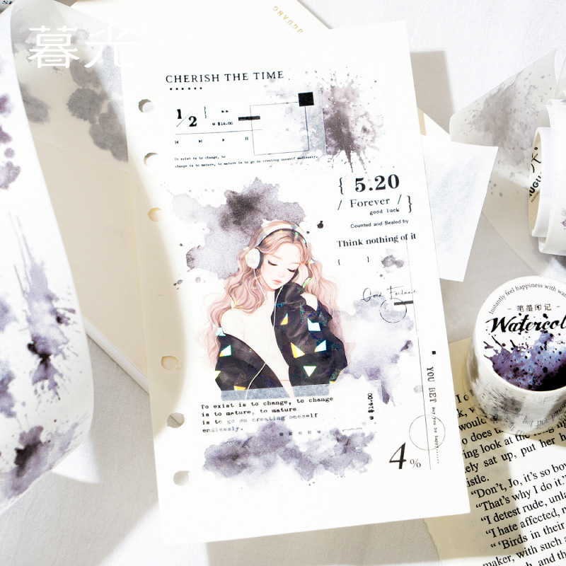 夕暮れの水彩痕跡シリーズの長い循環と紙テープにインクをかけた水彩コーヒーの痕跡手帳が底をつく4種類