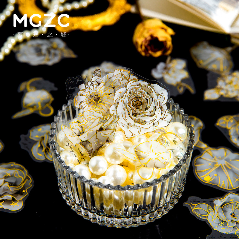 夕暮れの城花期シリーズPET箔押しシール田園手帳DIY素材貼り絵4種類
