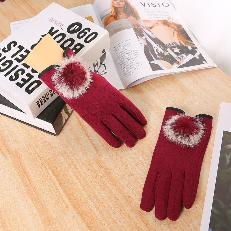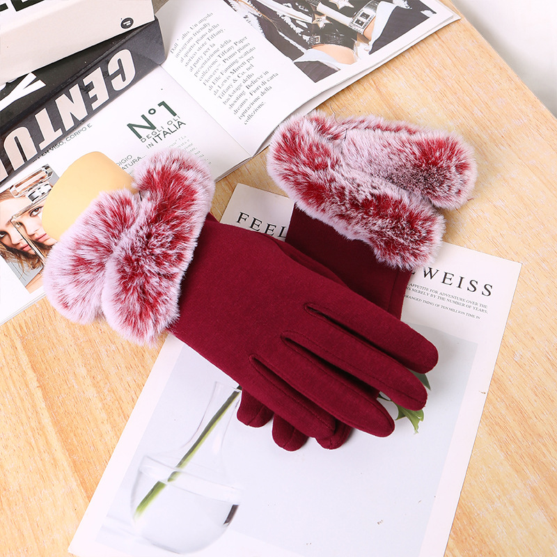 手袋女性冬ウサギの毛口がダウンしないかわいい保温タッチパネルと防風防寒レジャー自転車手袋