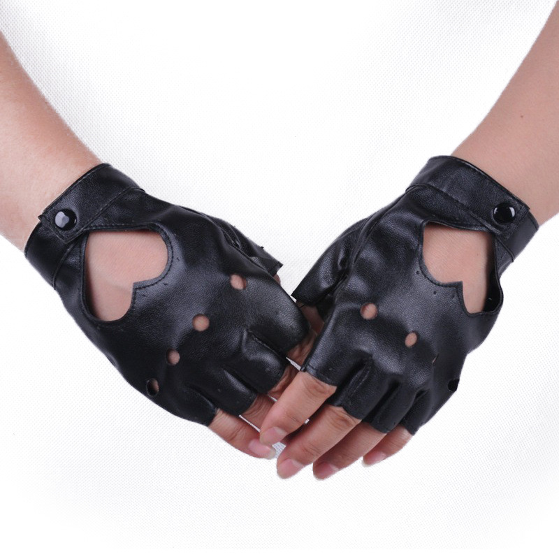 メーカー卸売り本革手袋パンクストリートダンスリベット半指本革手袋男性露指演出手袋