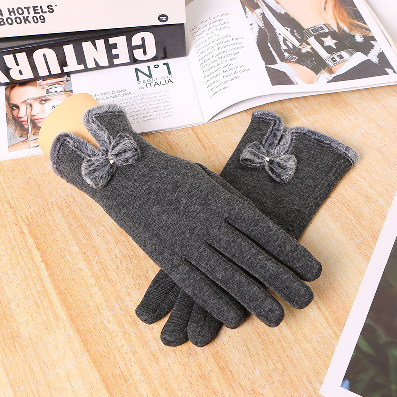 蝶結び手袋の女性は秋冬にベルベットを入れずに保温防風防寒かわいいタッチパネルでレジャー手袋を運転する
