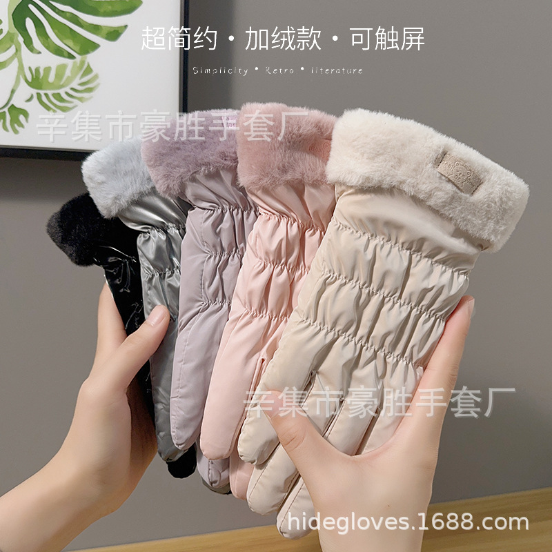 冬の手袋の女性のベルベットは保温がかわいい防寒自転車の防風タッチパネルのぬいぐるみスキー電気自動車手袋を厚くした