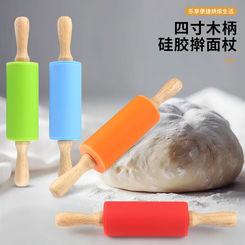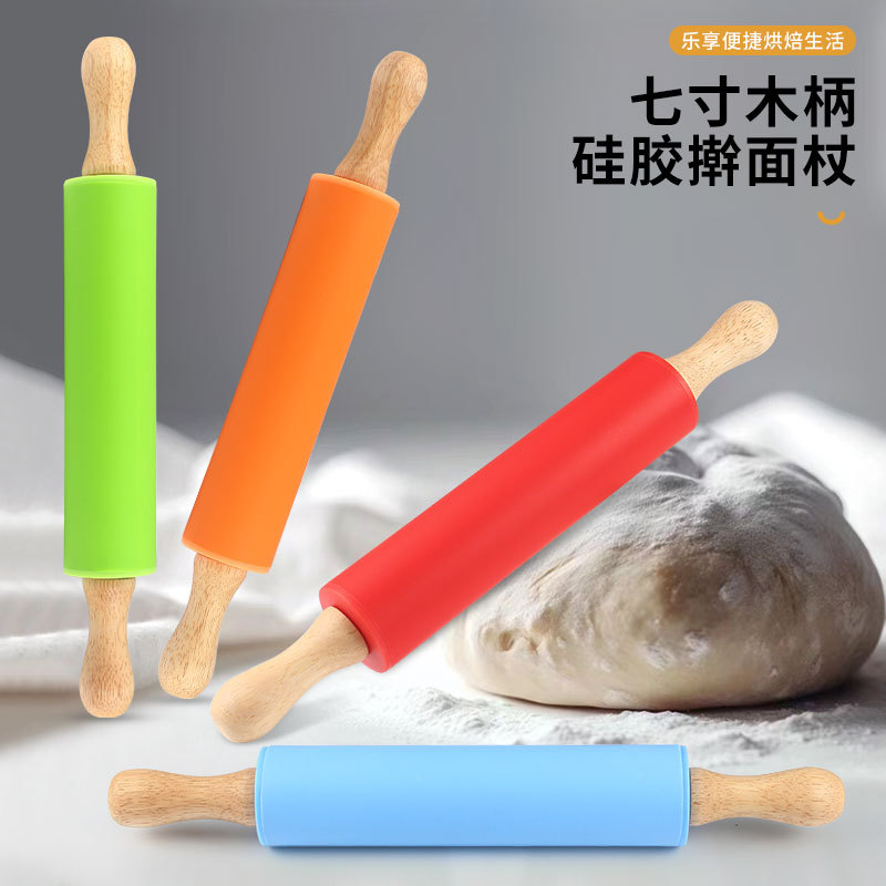 シリカゲルのめん棒の7寸の木の柄の家庭用シリカゲルのめん棒のギョーザの皮の麺の棒のシリカゲルのローラーの小麦粉の棒