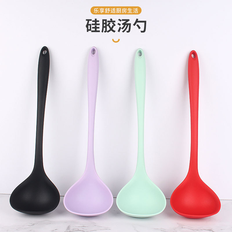 シリカゲルの調理器具の大きいサイズのシリカゲルのスープのスプーンの一体の全カバーのシリカゲルのスープの殻は鍋の専用のスプーンの台所の道具にくっつかないです。