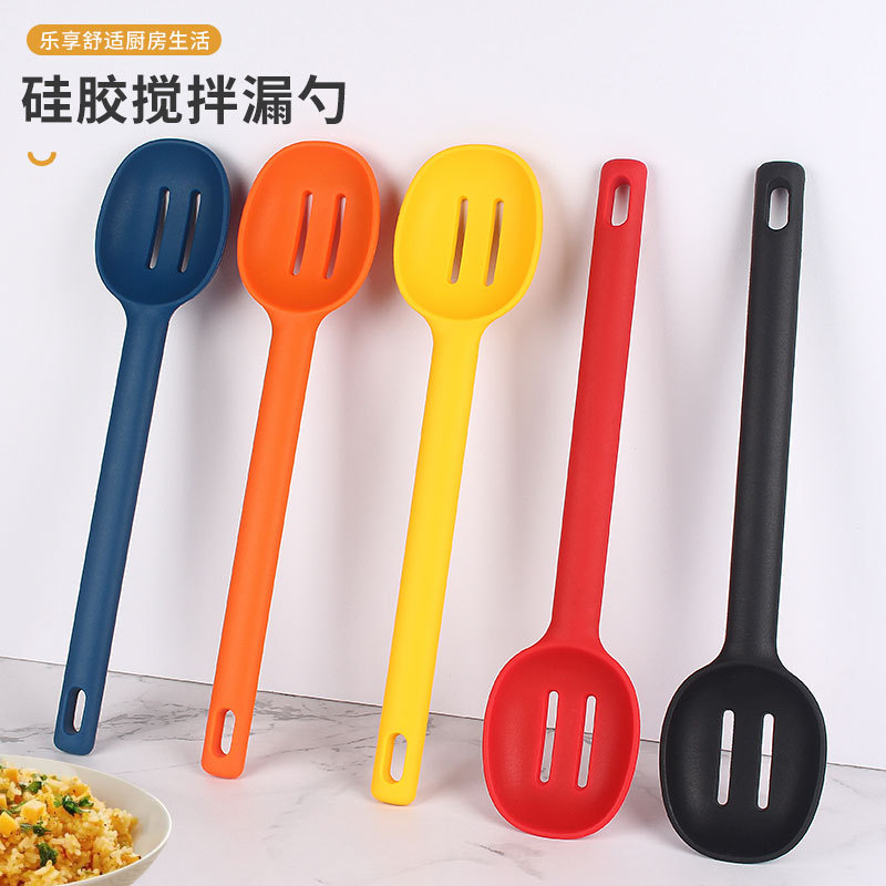 シリコン料理道具一体全包シリコン攪拌漏れスプーン無粘着鍋シリコン漏洩スプーンろ過スプーンサラダ攪拌スプーン