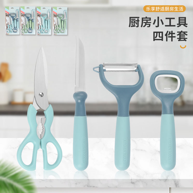 キッチンカッターセット家庭用キッチンガジェット4点セットステンレスはさみ皮むきナイフ栓抜き果物ナイフ