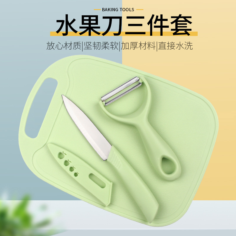 家庭用キッチンステンレス果物ナイフ3点セット皮むきナイフ包丁まな板セット